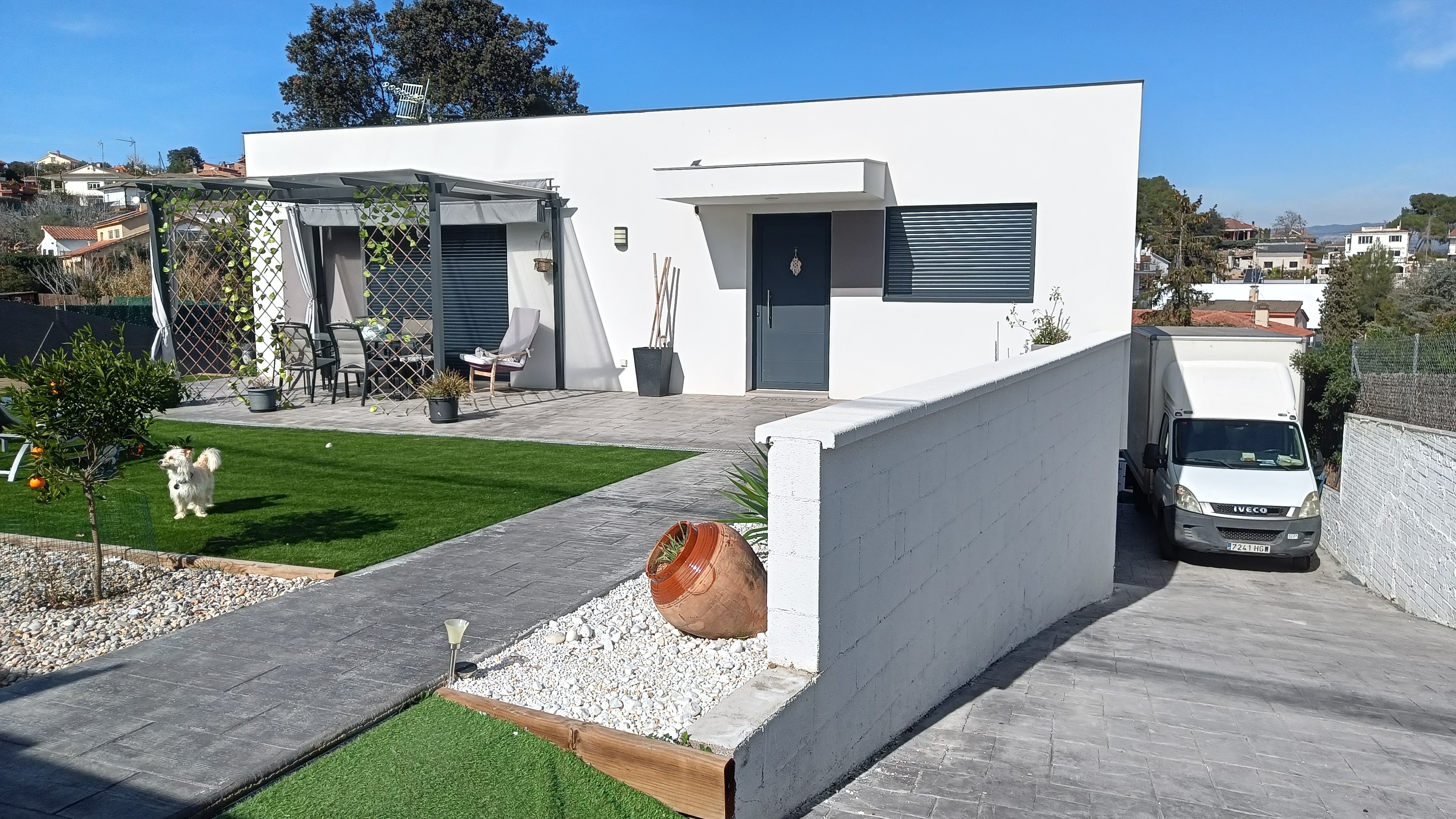Nuevo proyecto de estructura STEELFRAMING.ES® en Lliçà d’Amunt para una vivienda unifamiliar aislada de 150 m² construidos en planta baja, ubicada sobre una parcela de 535 m² con un marcado desnivel descendente de sur a norte, que permite disfrutar de unas excelentes vistas abiertas hacia el Vallès.